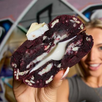 This Red Velvet Cookie is loaded with a creamy cheesecake filling and topped with a white choc chip that will ensure you never want to share a cookie. Ever. Again!