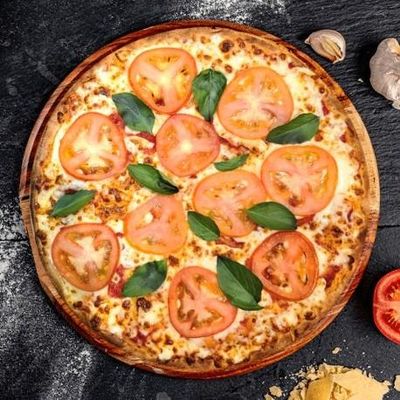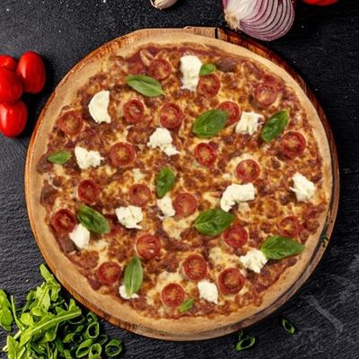 12" Large. Fior Di Latte Mozzarella on our Signature Sugo Pomodoro (Tomato) Base, Topped with Roasted Tomatoes & Fresh Basil