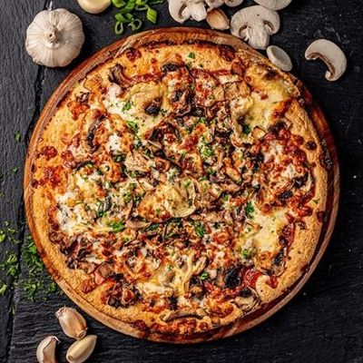 12" Large. Spinach, Mushroom, Oven Roasted Eggplant, Sun-Dried Tomatoes, Roasted Capsicum & Fior Di Latte Mozzarella on our Signature Sugo Pomodoro (Tomato) Base, Garnished with Our House Made Pesto Aioli