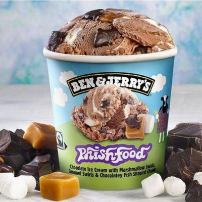 Chocolate Ice Cream with Swirls of Marshmallow and Caramel and Chocolatey Fish Shaped Chunks