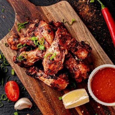 10 Wing Nibbles. A Earthy and Robust Dry Spice blend that delivers a perfect balance of uWarmth, Depth and subtle heat. Inspired by traditional Portuguese flavors- featuring Paprika, Garlic & a touch of Chilli. Garnished with Chives. Oven Roasted Slow & Tender, served with a complimentary sauce (Level 1 Spicy)