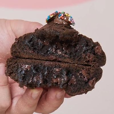 This overwhelmingly thick Brownie Cookie has more brownie than your memory of your Grandma's baking and it's even topped with a cheeky chocolate freckle for your enjoyment