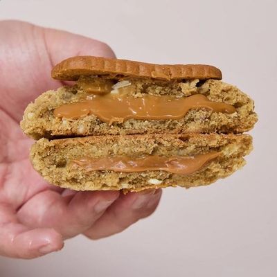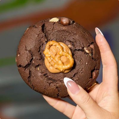 An indulgent take on a classic choc chip cookie, filled with Nutella filling and topped with roasted and crushed hazelnuts. Warning: highly addictive!